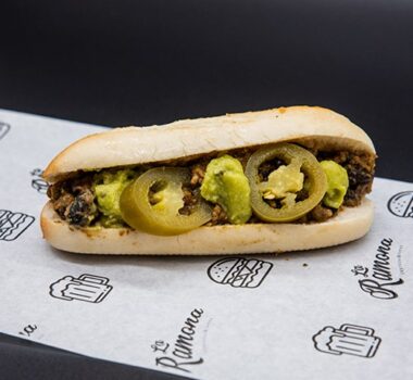 LA MÁS RAMONA Doble carne, queso ahumado, bacon, cebolla caramelizada y salsa Ramona Burger.